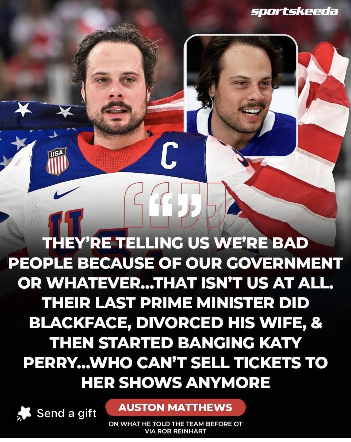 >>153656125If this is what your refering to it's over a year old and took place during the 4 nations.not to mention Trudeau wasn't even our pm then and he isn't now either >>153656149