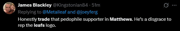 When the Toronto fans run Matthews out for not passing the purity test, they'll go after Yesavage next and kill all their prospects of being a serious Sports town for the next 70 years.