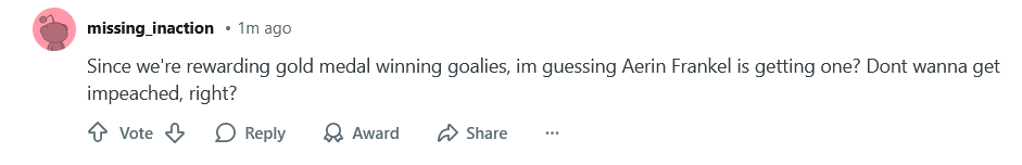 >>153657963>Aerin Frankel is more deserving, honestly. Helle was good all Olympics, but not Aerin Frankel good (other than the gold medal game)