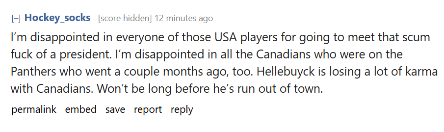 >hockey is literally politics now >BUT POLTARDS come on, the entire world is /pol/ now/pol/ existed in 2016 now it escaped into the general population it is everywhere you can't find a safe space from it