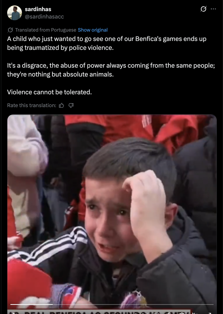 The Madrid cops beat the crap out of a bunch of Benfica fans outside the bernabeu including women and children. Football is back!