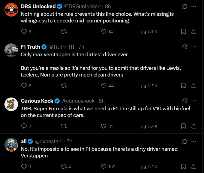 as those of you who follow my instagram reels know, i've been using x more. its been going well, but sadly today i opened the feed and its full of epik clips that feel like Drive To Survive clips.