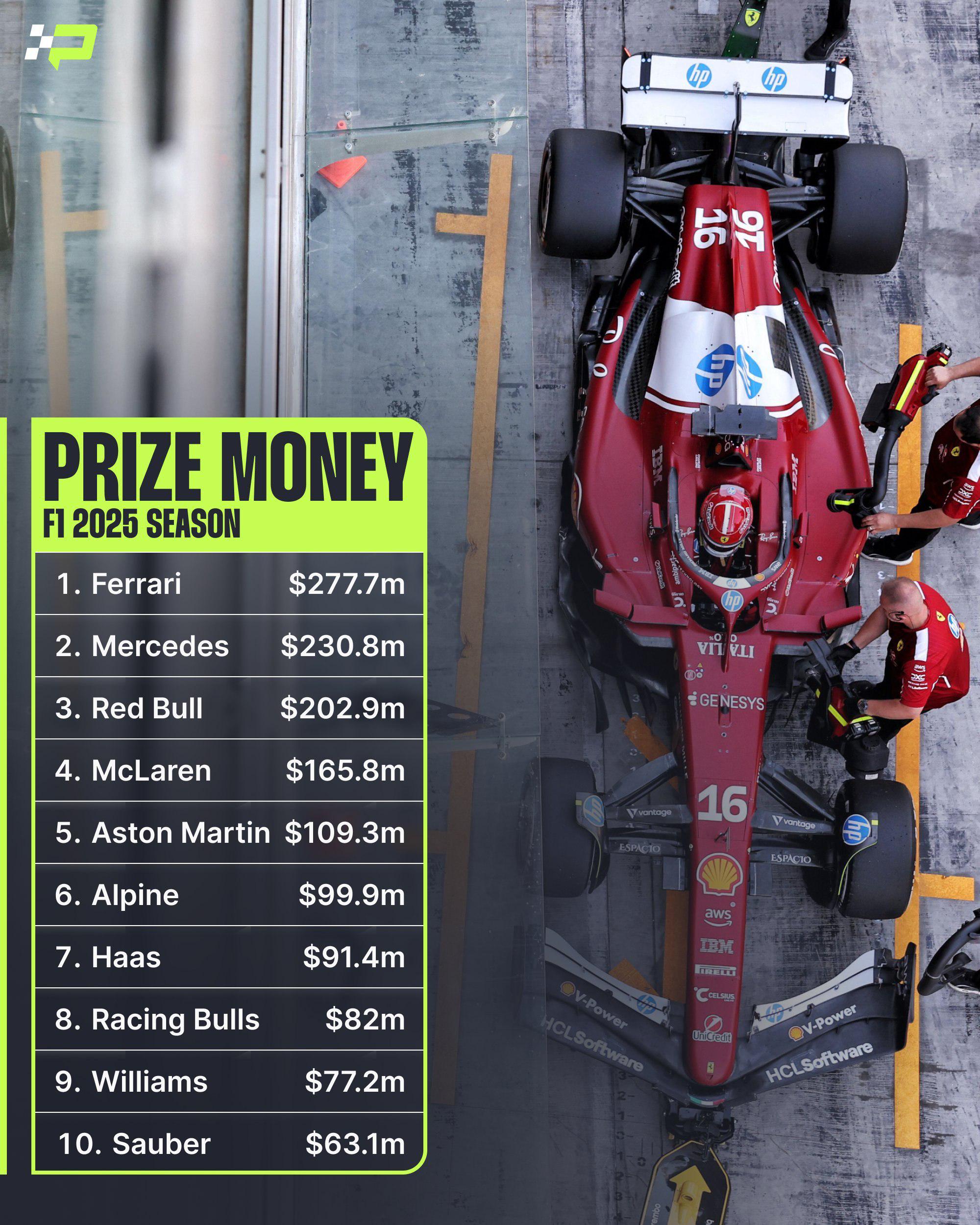 Even discounting the $100M Ferrari is paying to Hamilton, they still got more prize money than Mclaren for 2025. They have no incentive to actually get their shit together when acting like complete retards and finishing a mediocre p4 still gets them the biggest cut out of the prize pool.