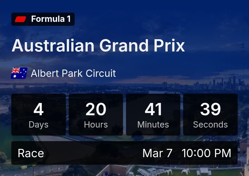 >Lap:#8354>Countdown to THE DEATH OF F1:https://f1exposure.com>Previous thread:>>153699599>/f1/ Essentials:https://pastebin.com/tZ67Gcuq>24/7 stream of the F1 Reviews from 1990-2009 (and possibly more F1-related content in the future):https://angelthump.com/gimi>Lewis Hamilton Grands Prix with Ferrari without scoring a podium:24>Toyota Gazoo Racing Haas F1 Team powered by Ferrari F1 Grands Prix without ever scoring a podium:215>Fernando Alonso F1 Grands Prix since last win:225 (224 starts)>2026 WDC Standings:GAS: 0COL: 0ALO: 0STR: 0ALB: 0>2026 WCC Standings:Alpine-Mercedes: 0Aston Martin Aramco-Honda: 0Atlassian Williams-Mercedes: 0Audi: 0Cadillac-Ferrari: 0>2026 WEC Standings:BOT: 0HAM: 0NOR: 0>News:Charles wifed AlexandraMiddle East has some scuffle, Gulf GPs status: unknownMonitoring the situation continuesDrive to Survive isn't going anywhere (that's a threat..)GP de Monaco mandatory two-stop rule scrappedMartin Donnelly will return to the cockpit of an F1 car; good luck, Martin!