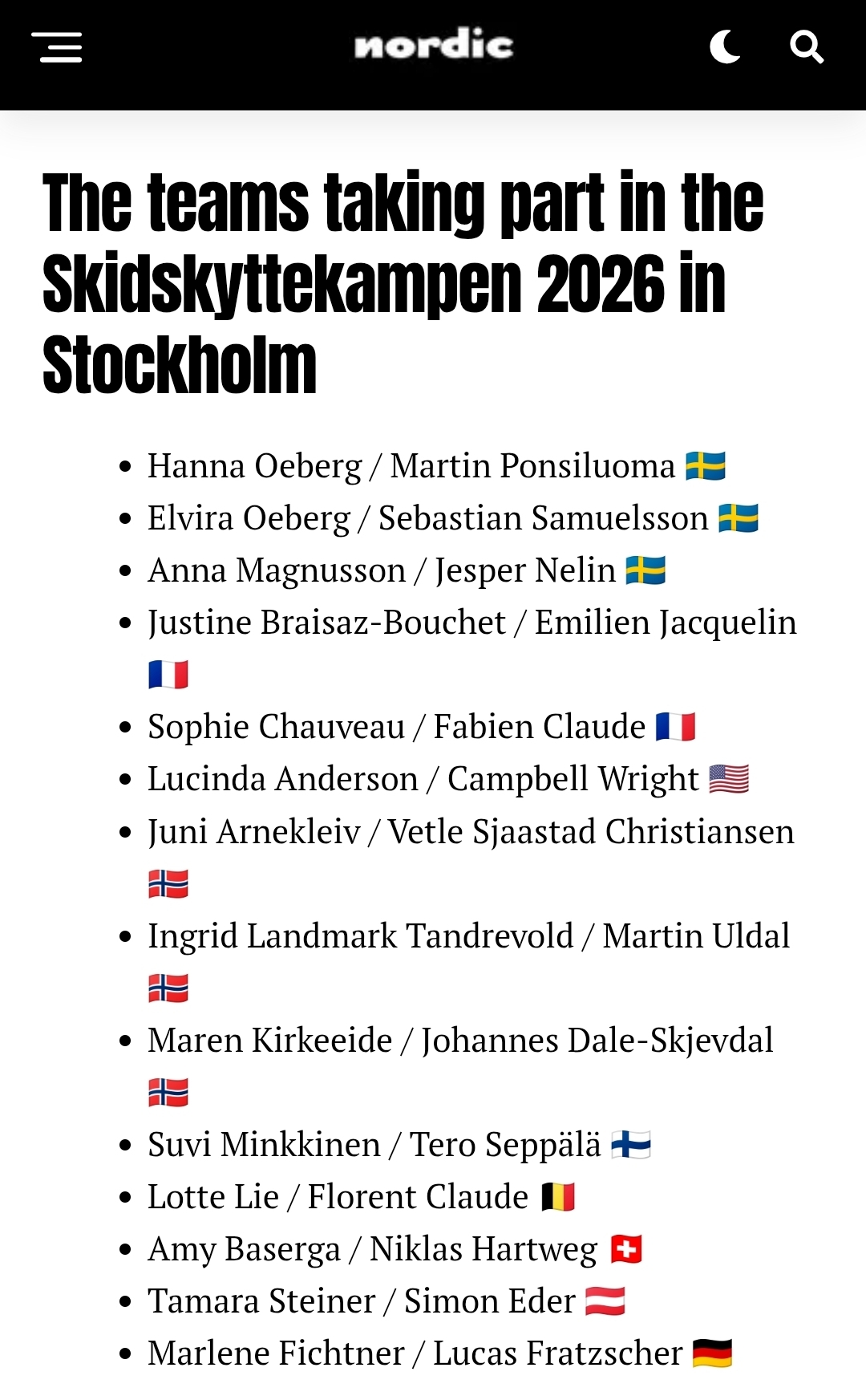 In 40 minutes that mixed-relay biathlon competition that they have in Stockholm in the stadium startsI am gonna post the SVTplay link but it can only be seen from Sweden so i guess get a VPN or find some other stream?https://www.svtplay.se/video/KRozgr3/skidskyttekampen/skidskyttekampen