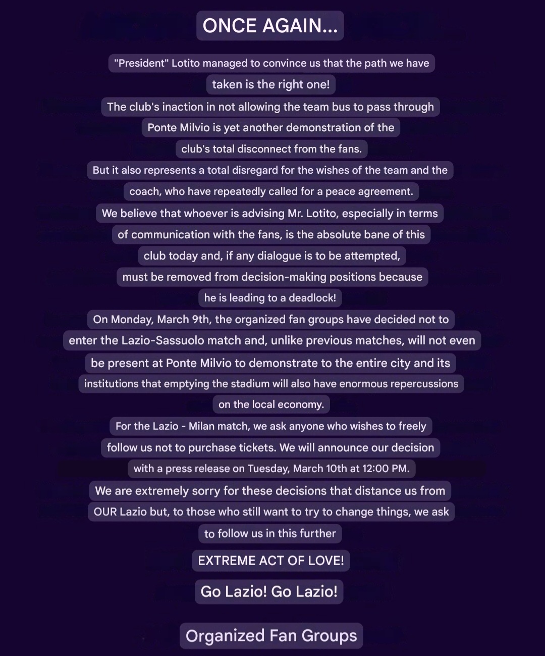 >>153728028Why are Lazio ultras refusing to attend the games then?They want him gone.