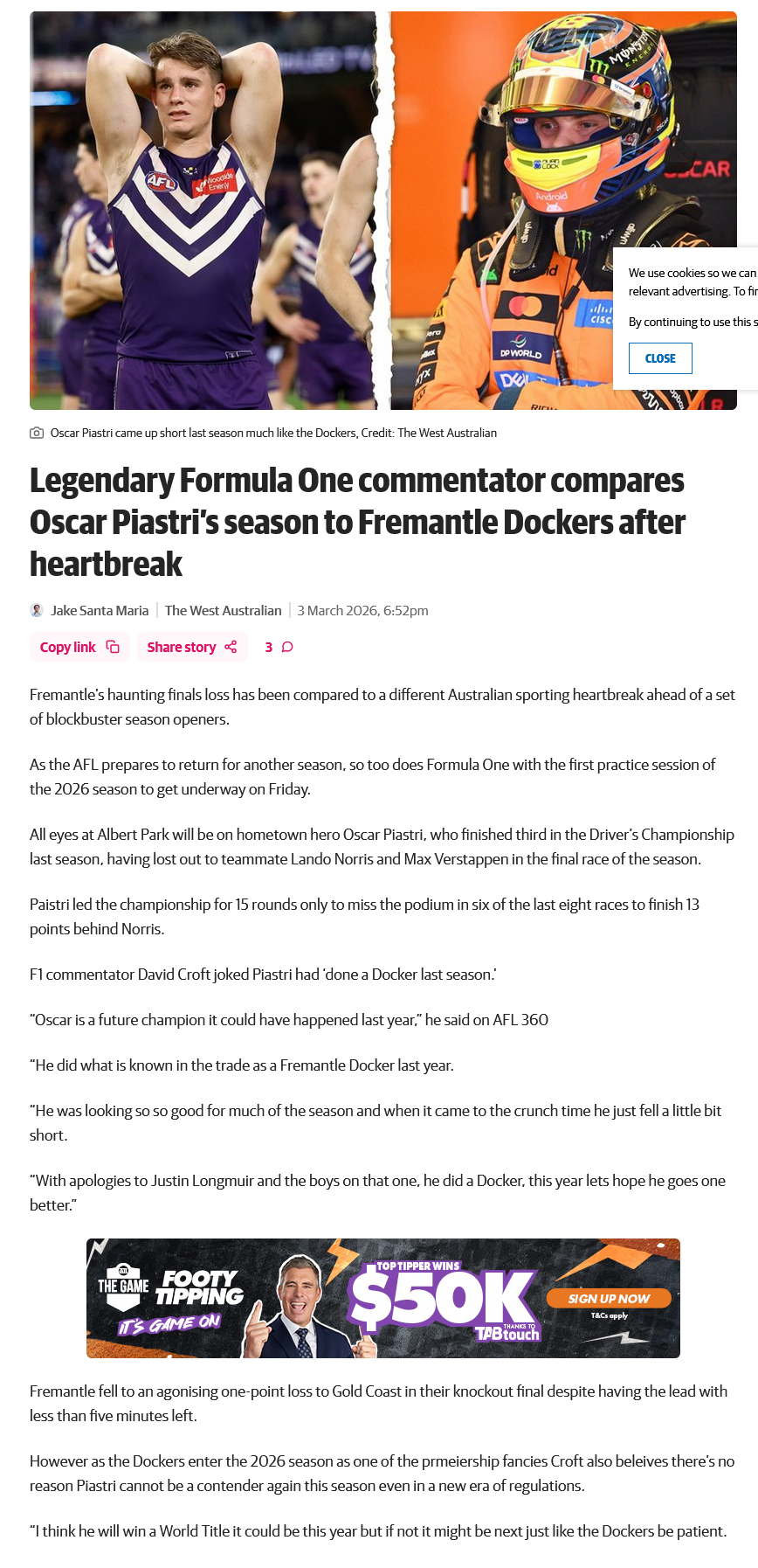 I wonder how much Australians hate Land Of Norris, since he destroyed their best two pilots since Alan Jones.