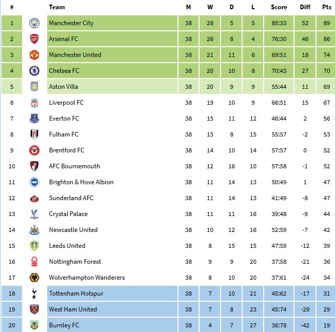 just did score predictions for remaining games, this is the final table. wolves actually manage to pull it off, crazyand arsenal slip to second but that was a known fact by mid season so hardly worth mentioning