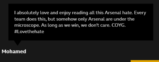 arsenal are winning the league, there's no competition for us :')