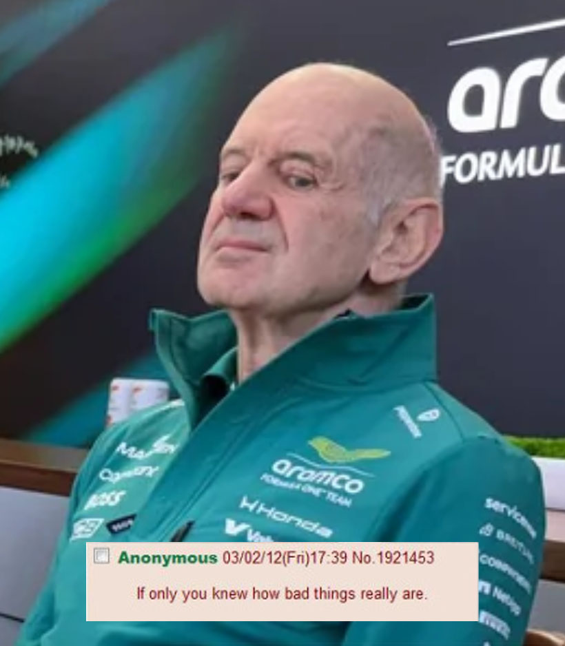 Aston Martin insiders reporting that Adrian Newey has spent the last few months locked in a small room, constantly smoking opium