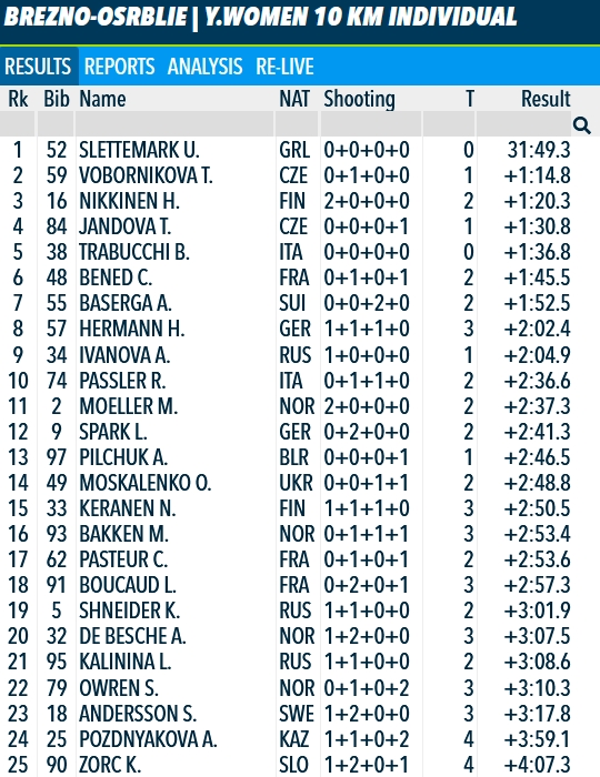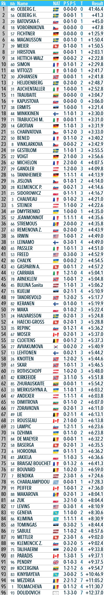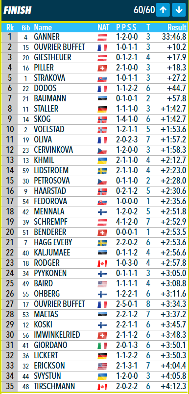 Öbergs bullying short individuals again, total Norwegian collapse aside from Marthe, and Lithuania's Traubaite scored her career best in the most brutal discipline (previously she hadn't been in top 40).