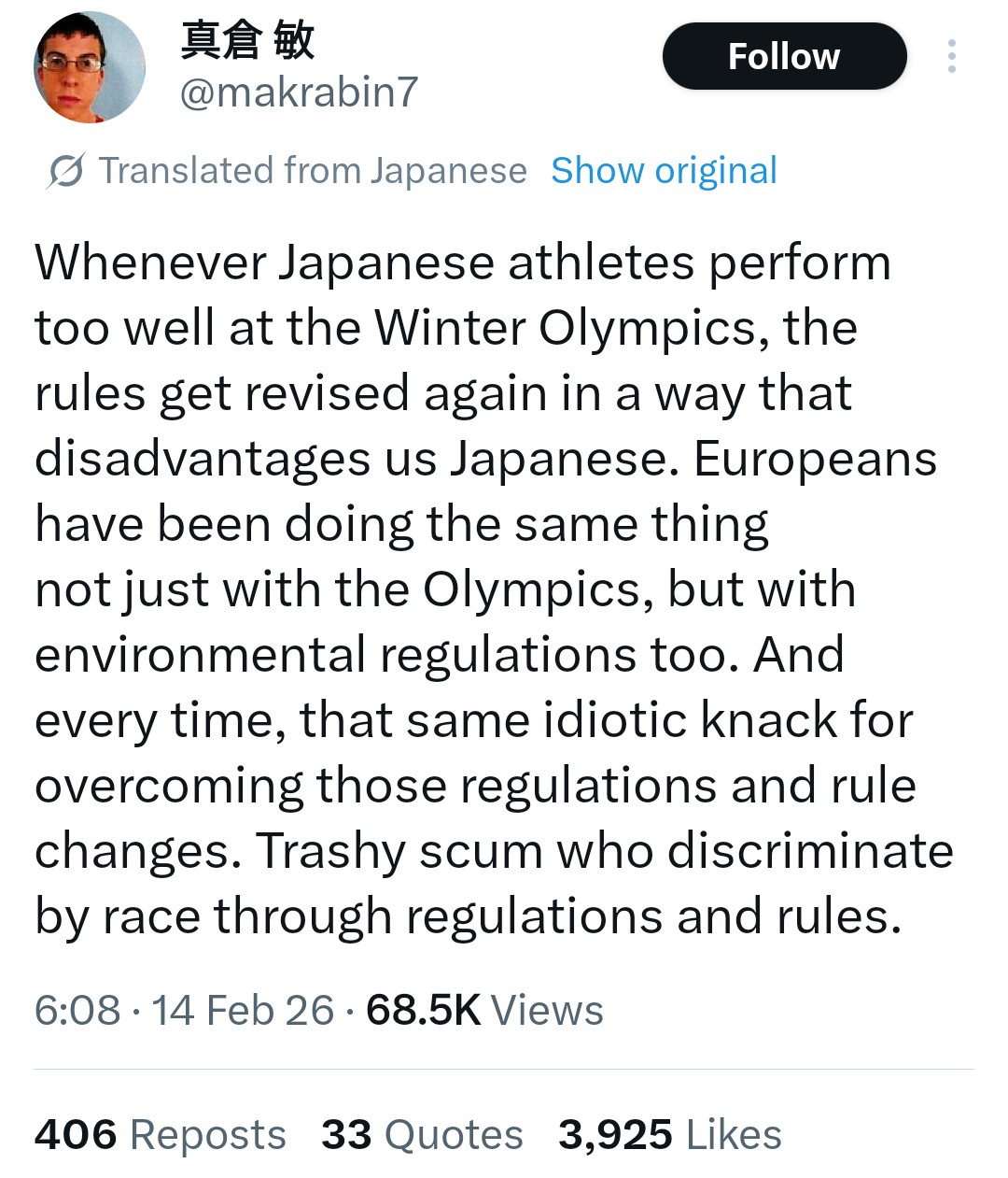>>153737823japanese could win many more medals in biathlon and nordic ski but westerners changed rules to prevent japanese to winthis is famous fact