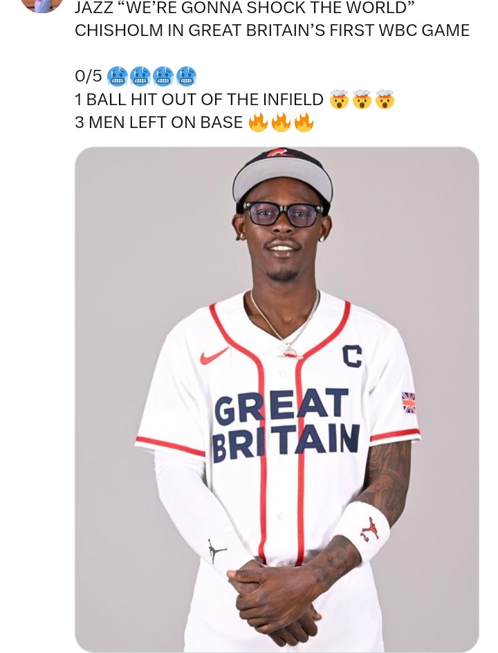 >>153793316"Great Britain" doesn't have a baseball teamThey have a bunch of hired guns with nebulous connections to the Caribbean and other Imperial conquestsI haven't heard one single English accent, let alone the the pigmentation aspect of it all
