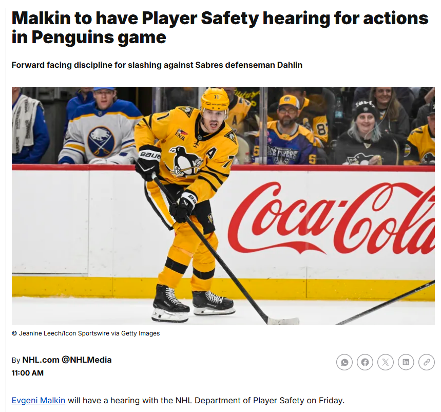 >malkin suspended 5 gamesWow way to tarnish your career buddy