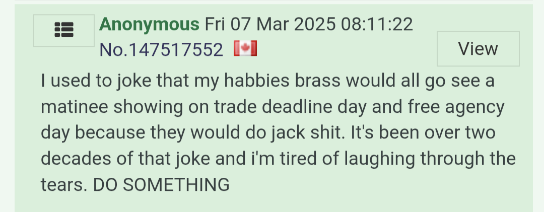 >>153750091Thanks Lou, you should come back to my Leafs, you'd be far better