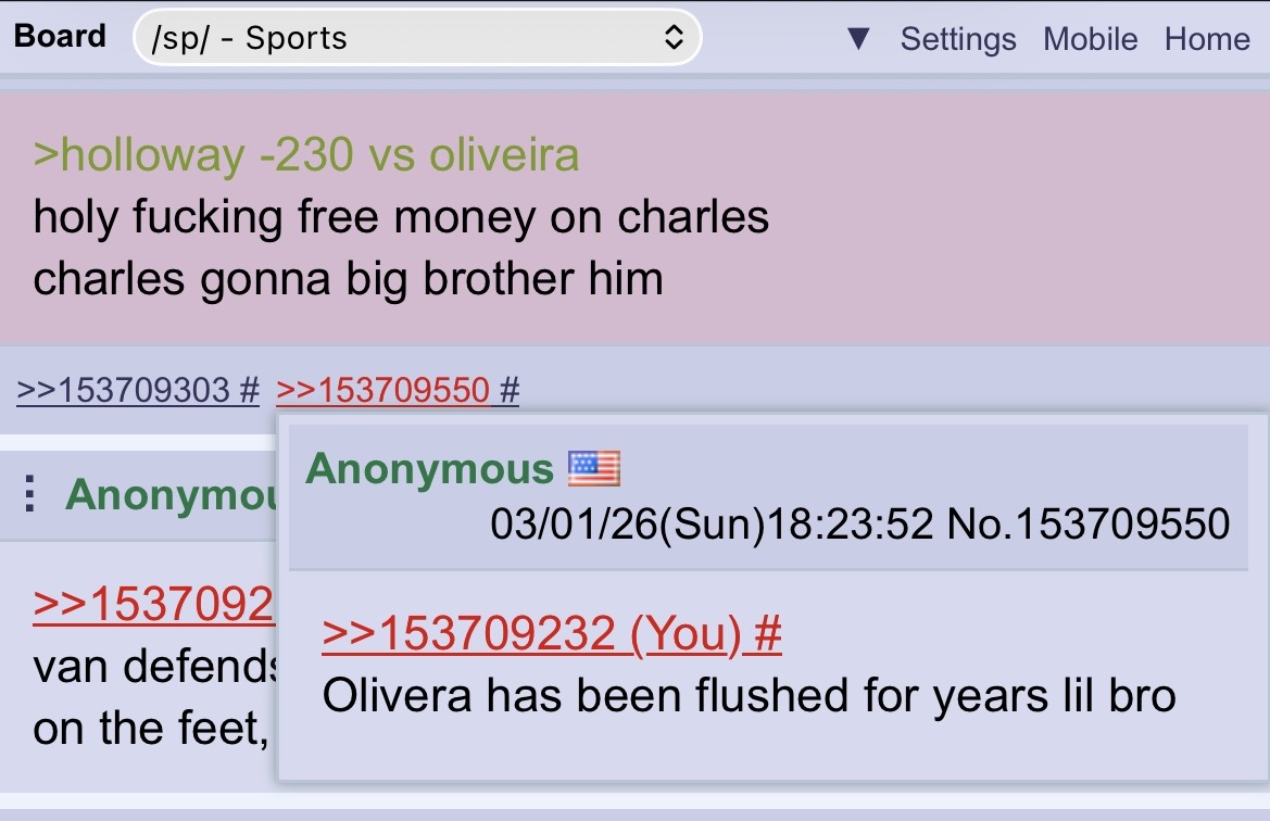 >>153771159Paramount and Charles Oliviera ruined the UFC. I'm honestly done. I will spend Saturdays with my family instead of this now