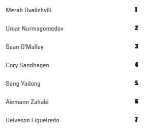 Ilia heems Garth dead 1st roundGane heems Pereira 4th round.Zahabi grapplefucks O'cuckleyRuffy heems Chandler.Nickal wins. who cares.Lopes heem Garcia.