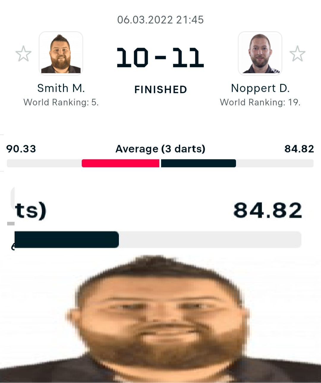 >>153784798>if it's not world ranked #97 vs #104 with mid 80s averages it's not propa dartslove this meme