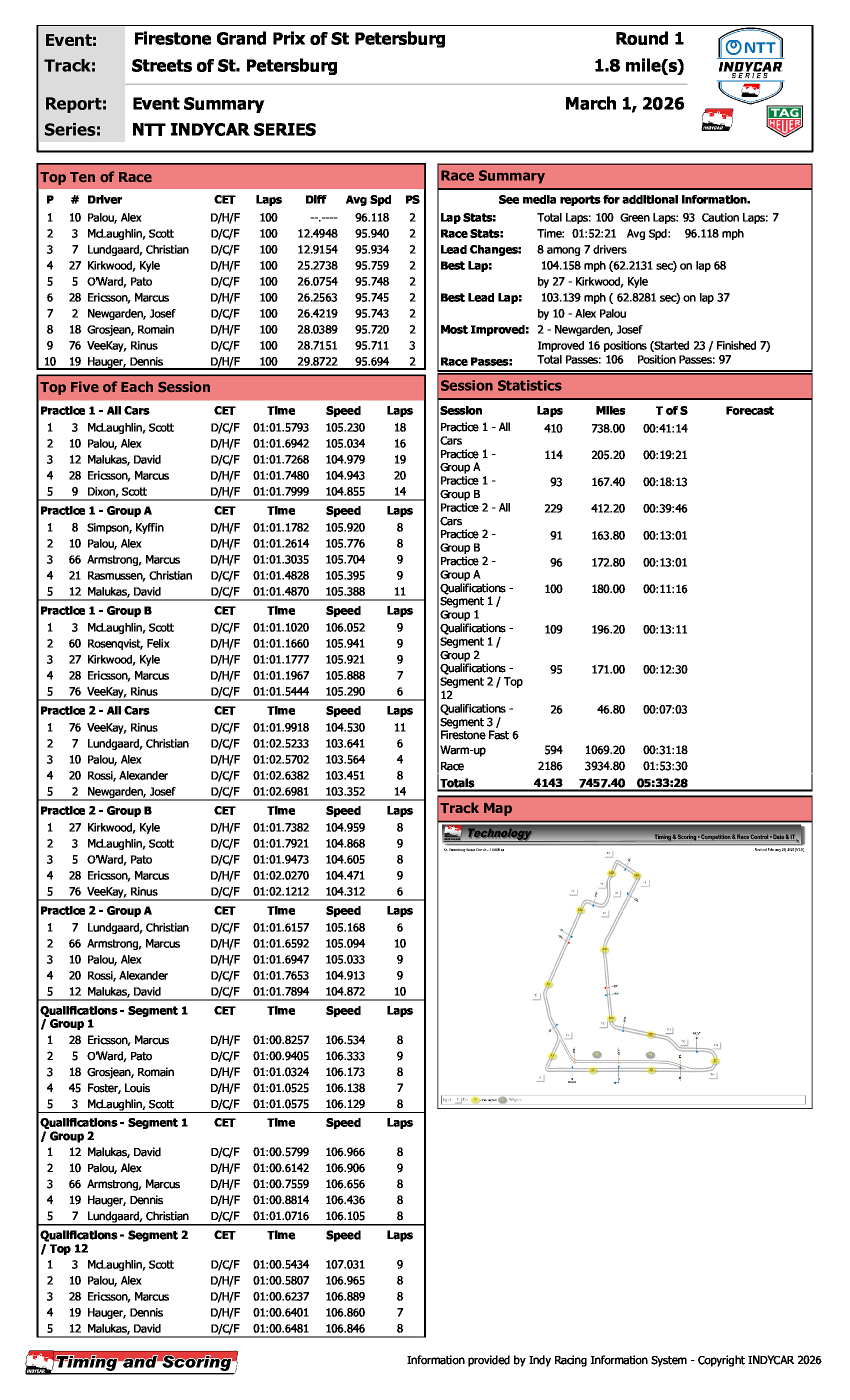 >St. Pete 2026>Qualifying https://www.youtube.com/watch?v=e8d9czaiMjghttps://www.youtube.com/watch?v=SBsTBwZPszE>Highlightshttps://www.youtube.com/watch?v=UaqoynqLkVEhttps://www.youtube.com/watch?v=bNVAxXfuU4A>Full Racehttps://www.youtube.com/watch?v=qFeoTRihdGghttps://www.youtube.com/watch?v=123wiCg-qKM