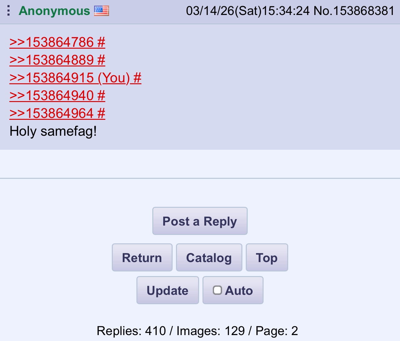 >>153827946>This board needs poster IDs.>This board doesnt poster IDs.