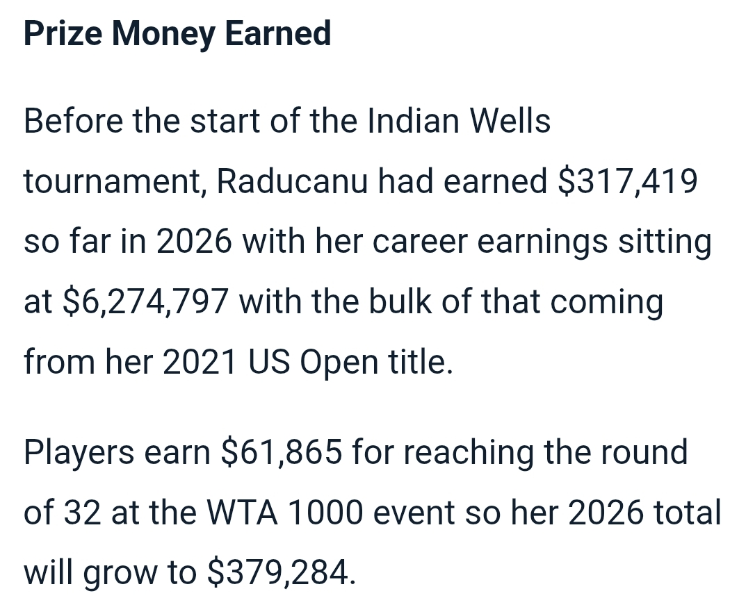 Who really lost here tho?This fuckuseless mercantile whore earned $61,865 for showing up at Indian Wells - kind of - then getting horsed out in 50 minutes. She barely raised an arm ffs. Fucking racket.
