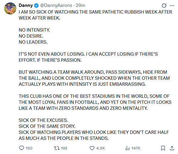 Loving this downfall Get relegated next you useless cunts