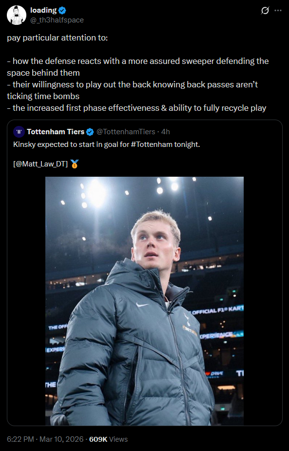 >One of the biggest changes to Tottenham's starting eleven is in goal. Kinski replaces Vicario. Cuti Romero also returns to the defense. Spence is another new face at left-back, having just recovered from injury. And Gallagher will start on the bench against his former club.