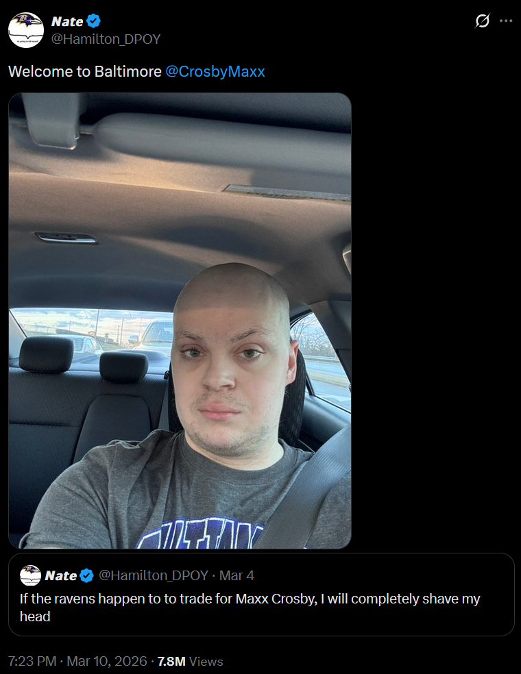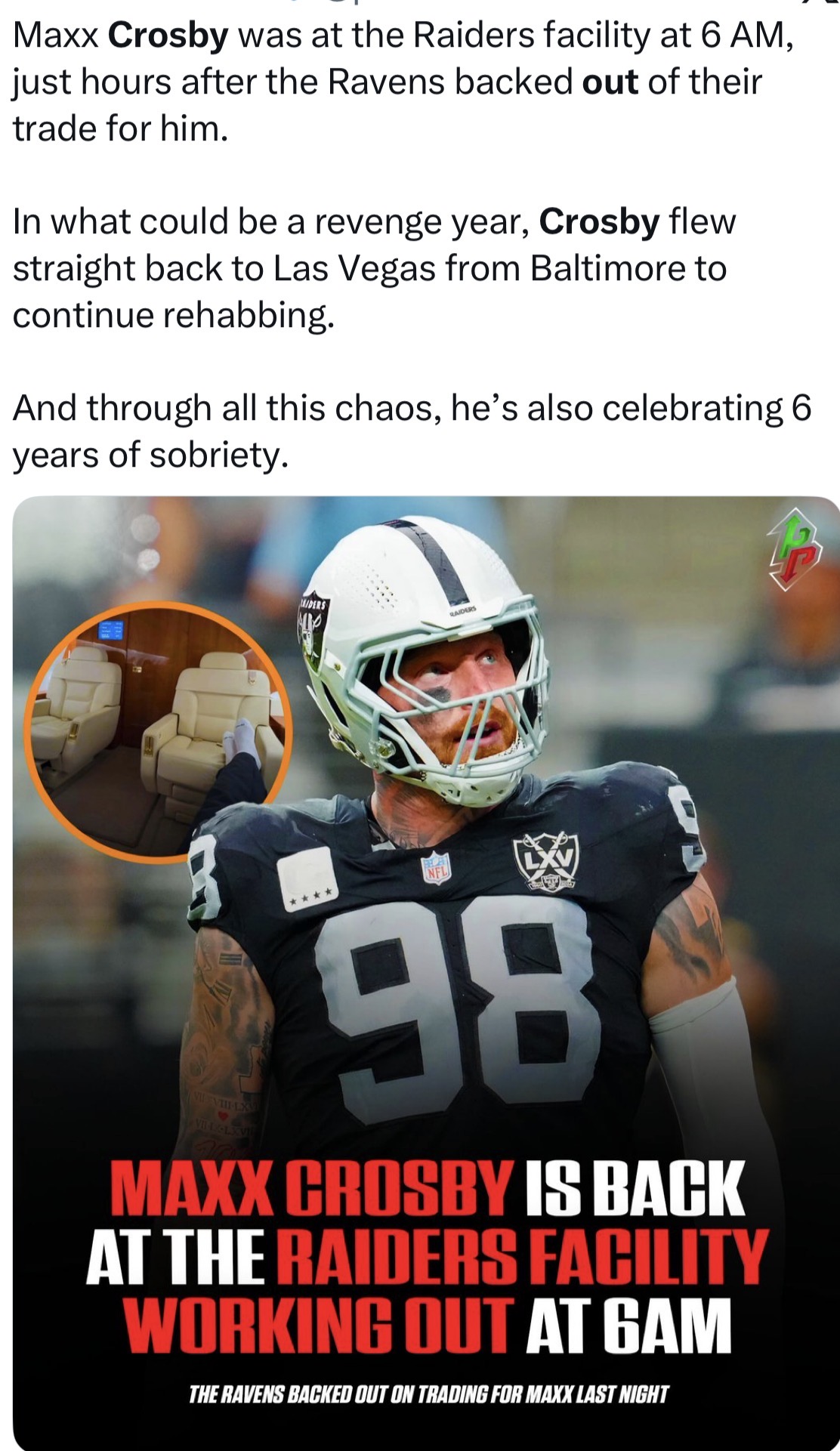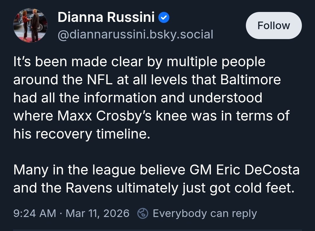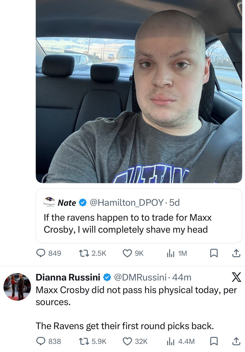 >Ravens now need to get a pass rusher while clearly desperate for one>Raiders now need to offload Crosby while clearly desperate to free up cap spaceThe most lose-lose trade to never happen