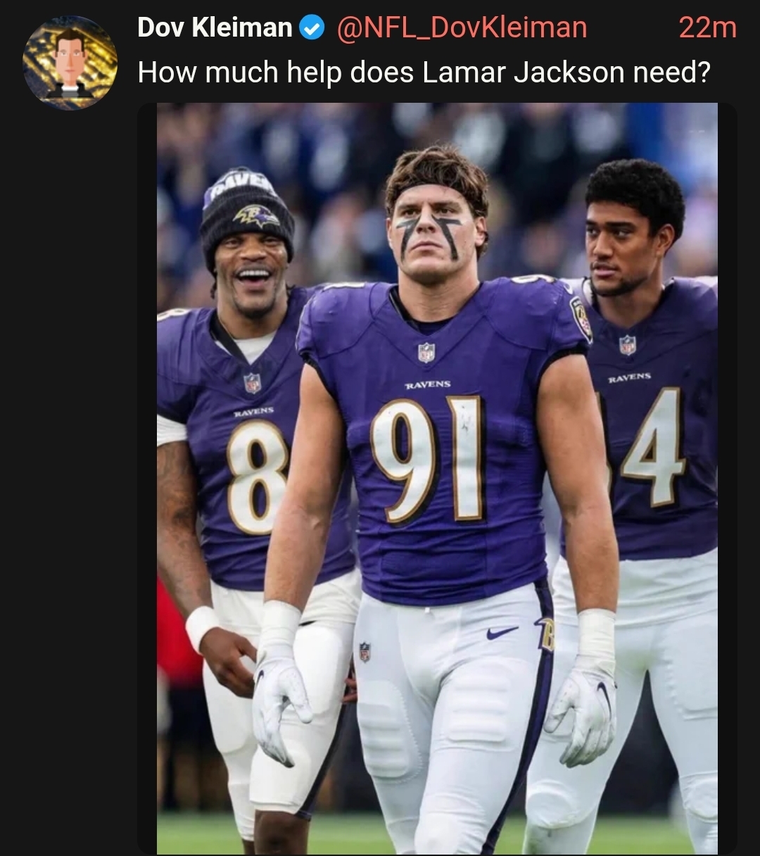 >>153820910the only team anyone brought up is the Bills, as in they've done about as much as the Ravens and nobody is jealous of the Bills. Nobody is jealous of the Ravens either.