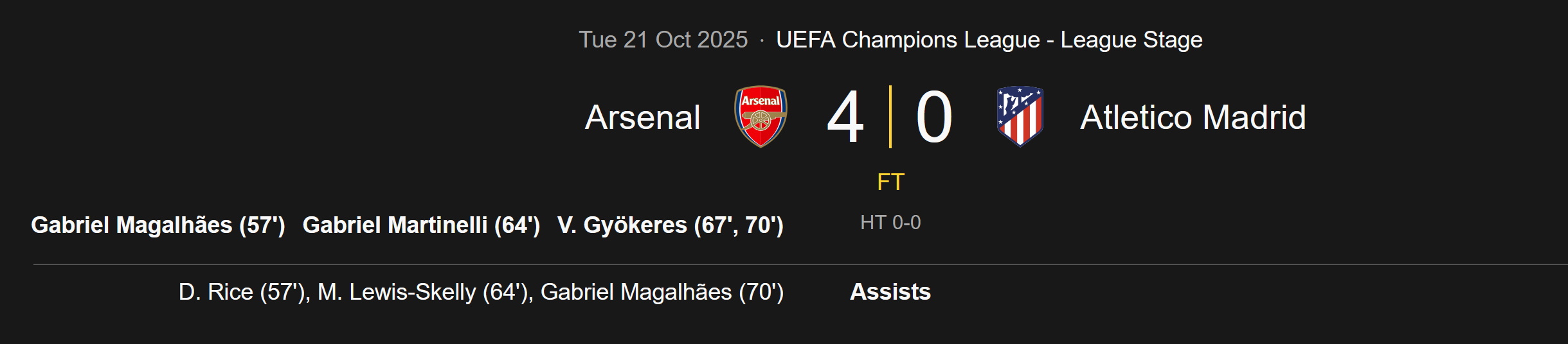 >>153821913>0-2Good win for away team Arsenal