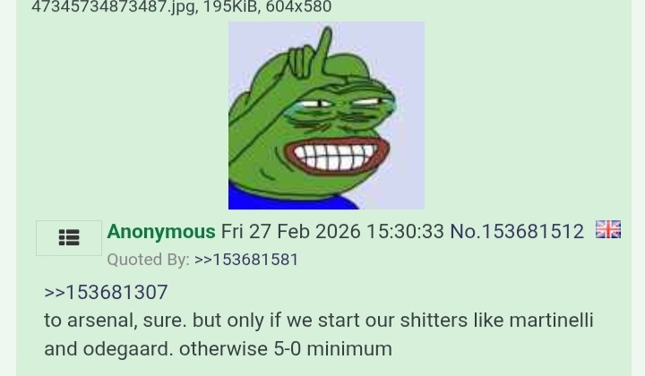 Arsenal win this 1-2 you pretentious fucks. >Muh muh muh arteta muh muh we're shit