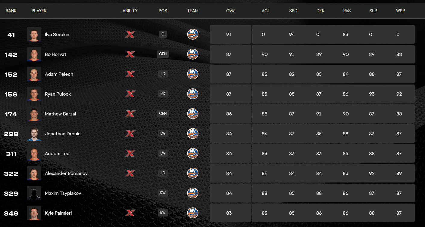 >>153834168in fact these are the only Isles players rated for some reason