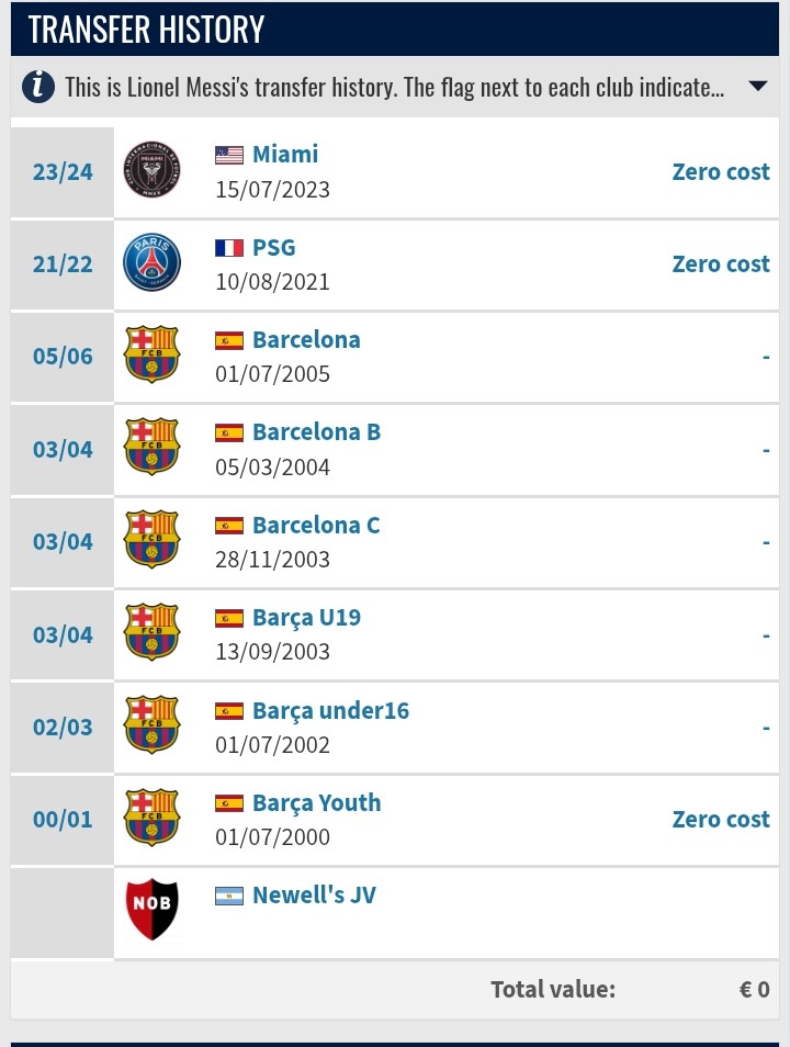 Messi's transfer history