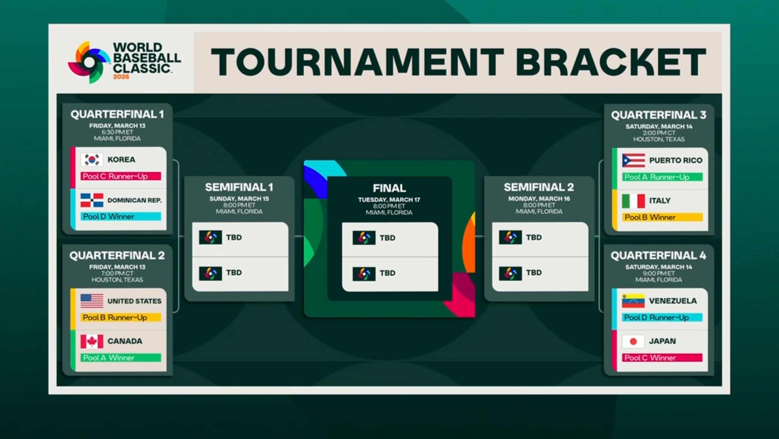 >DR>US>Italy>tossup but probably Venezuela My prediction for semifinals