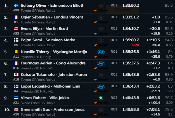 Virves takes the WRC2 lead for the time being. Brotha can drive. And to think just a while ago he had to beg and search for pennies in his couch to get only a few rallies in