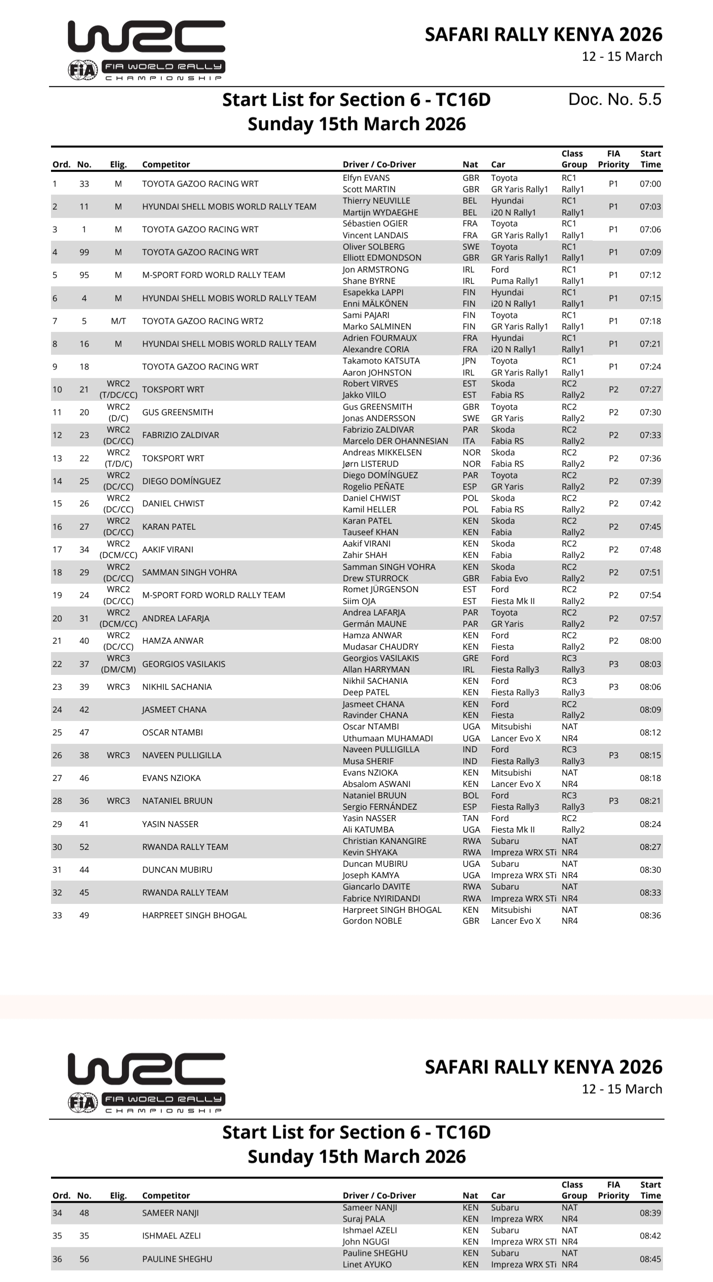 50k-s shorter route than last year and no fech fech :((( edition> RESULTS & TIMINGhttps://ewrc-results.com/event/96257-safari-rally-kenya-2026/results/525203https://www.wrc.com/en/events/wrc-safari-rally-kenya-2026/wrc-rally-kenya-2026-results> MAPShttps://www.rally-maps.com/Safari-Rally-Kenya-2026> SCHEDULEhttps://ewrc-results.com/event/96257-safari-rally-kenya-2026/itinerary> LIVE CAR TRACKERhttps://webapps2.wrc.com/2020/web/live/live.html