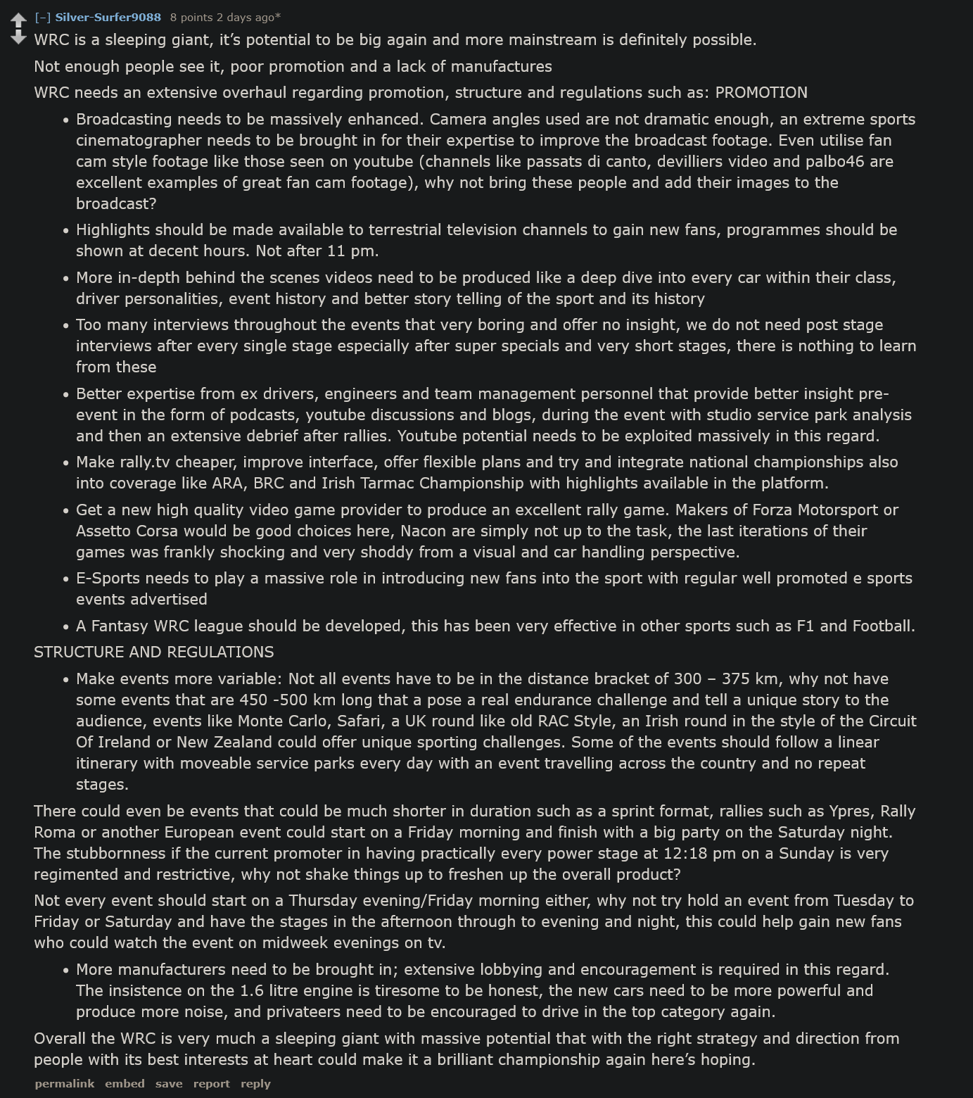 A surprisingly reasonable take found on plebbit on the state and problems of current WRC.
