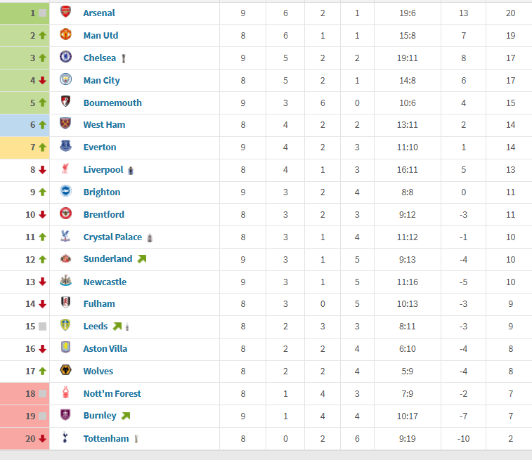 >newcastle 9th>sunderland 13thoh no no no