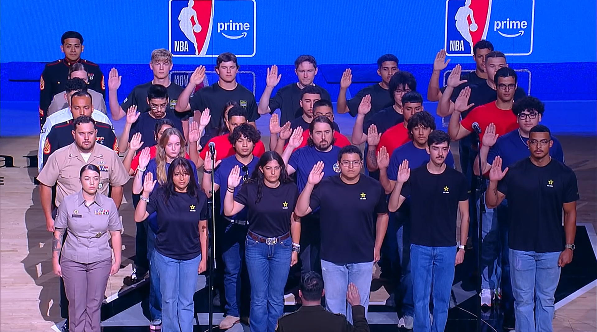 >The Spurs halftime show is a bunch of new recruits doing their oath of enlistment because its military night