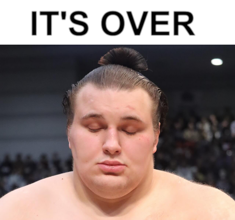 >Hoshoryu is in the lead to win the cup>"FINALLY! It's about time I won...">Onosato announces his return to the tournament>Hoshoryu is forced to face him>Hoshoryu is exhausted after all the matches>Onosato is fresh and rested>He's also heavily stuffed with painkillers and sedatives>Onosato performs the most violent and deadly tachiai of his career, launching Hoshoryu into the air>"Well, one loss doesn't mean anything... I'm still in the lead... besides, Aonishiki faces Onosato tomorrow and has NEVER bea...">Onosato announces his retirement from the tournament again due to injury>He gives Aonishiki a free win>Hoshoryu vs. Aonishiki playoff>Aonishiki winsTrust the keikaku...