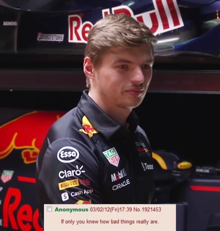 >Ferrari finally have a decent car>Hamilton gets kicked out to make way for VerstappenThe Anglo meltdown is the only reason I will keep watching.