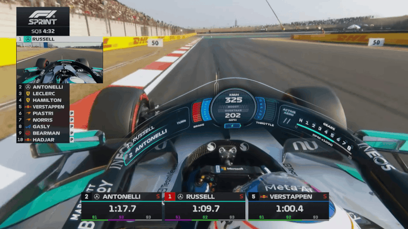 >russell on the straight during sprint quali>km/h stays at 325 even though you can clearly hear the clipping>only when he hits the brakes, the km/h rapidly decreases, but only after a short delayBroadcast bug or broadcast sabotage. Call it.Here is the whole thing with audio so you can really hear what I mean: https://youtu.be/-LnHUI4DxRs?si=SgM41kdf3BZqrQYf&t=240