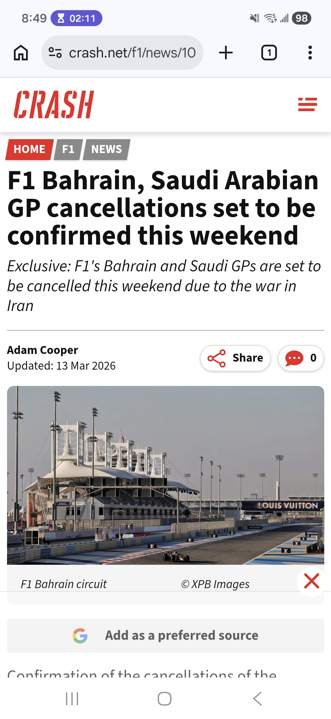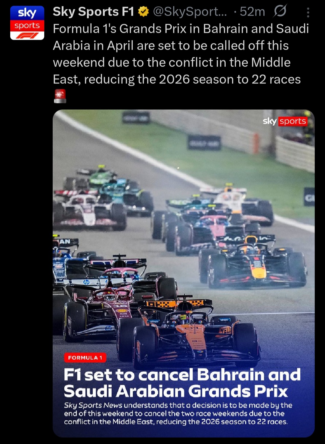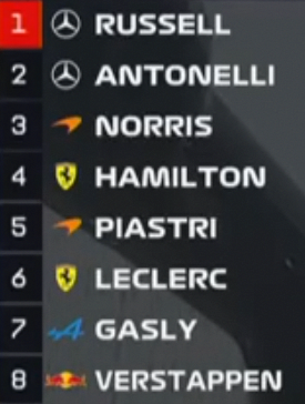 >Lap:#8377>Countdown to THE 天安门广场残杀 OF F1:https://f1exposure.com>Previous thread:>>153844089>/f1/ Essentials:https://pastebin.com/tZ67Gcuq >24/7 stream of the F1 Reviews from 1990-2009 (and possibly more F1-related content in the future):https://angelthump.com/gimi>Lewis Hamilton Grands Prix with Ferrari without scoring a podium:25>Toyota Gazoo Racing Haas F1 Team powered by Ferrari Grands Prix without ever scoring a podium:216>Fernando Alonso Grands Prix since last win:226 (225 starts)>2026 WDC Standings:RUS: 25ANT: 18LEC: 15HAM: 12NOR: 10>2026 WCC Standings:Mercedes: 43Ferrari: 27McLaren Mercedes: 10Red Bull Racing Red Bull Ford: 8Haas Ferrari: 6>2026 WEC Standings:PIA: 74.12LAW: 62.35COL: 57.65>News:Sprint qualifying: RUS ANT NOR HAM PIA LEC GAS VER BEA HADRussell takes dominant Chinese GP sprint poleOscar Piastri: Mercedes superiority at F1 Chinese GP is "pretty impressive"Kimi Antonelli escapes F1 Chinese GP sprint grid penaltyMax Verstappen lost “massive time in corners” in Red Bull F1 qualifying “disaster”Williams is emerging as one of the “biggest disappointments”, according to Jolyon PalmerLewis Hamilton makes Ferrari demand to reduce F1 deficit to Mercedes