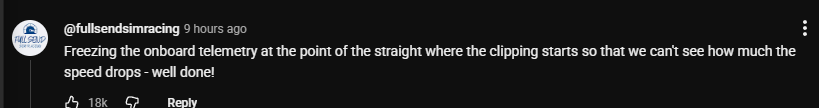 think it was lindblyad who had an uncut run down the back straight and he dropped 35-40kmh during "super clipping". q2 iirc