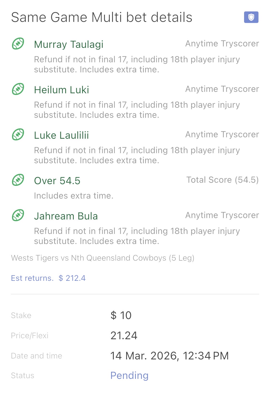 After last nights magic, have had a sneaky $5 on Alex Twal for fts this arvo