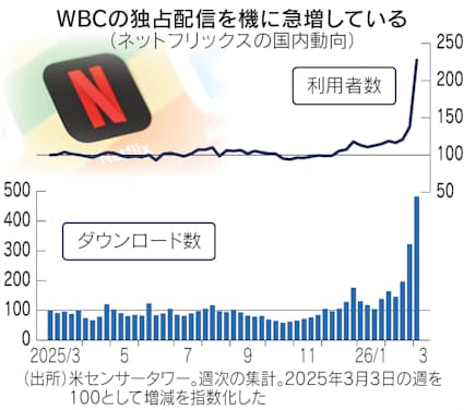 The quarterfinals of the World Baseball Classic (WBC) will begin on Friday. The number of Japanese subscribers to Netflix increased 2.3 times. Netflix has spent a lot of money on broadcast rights to attract baseball fans.