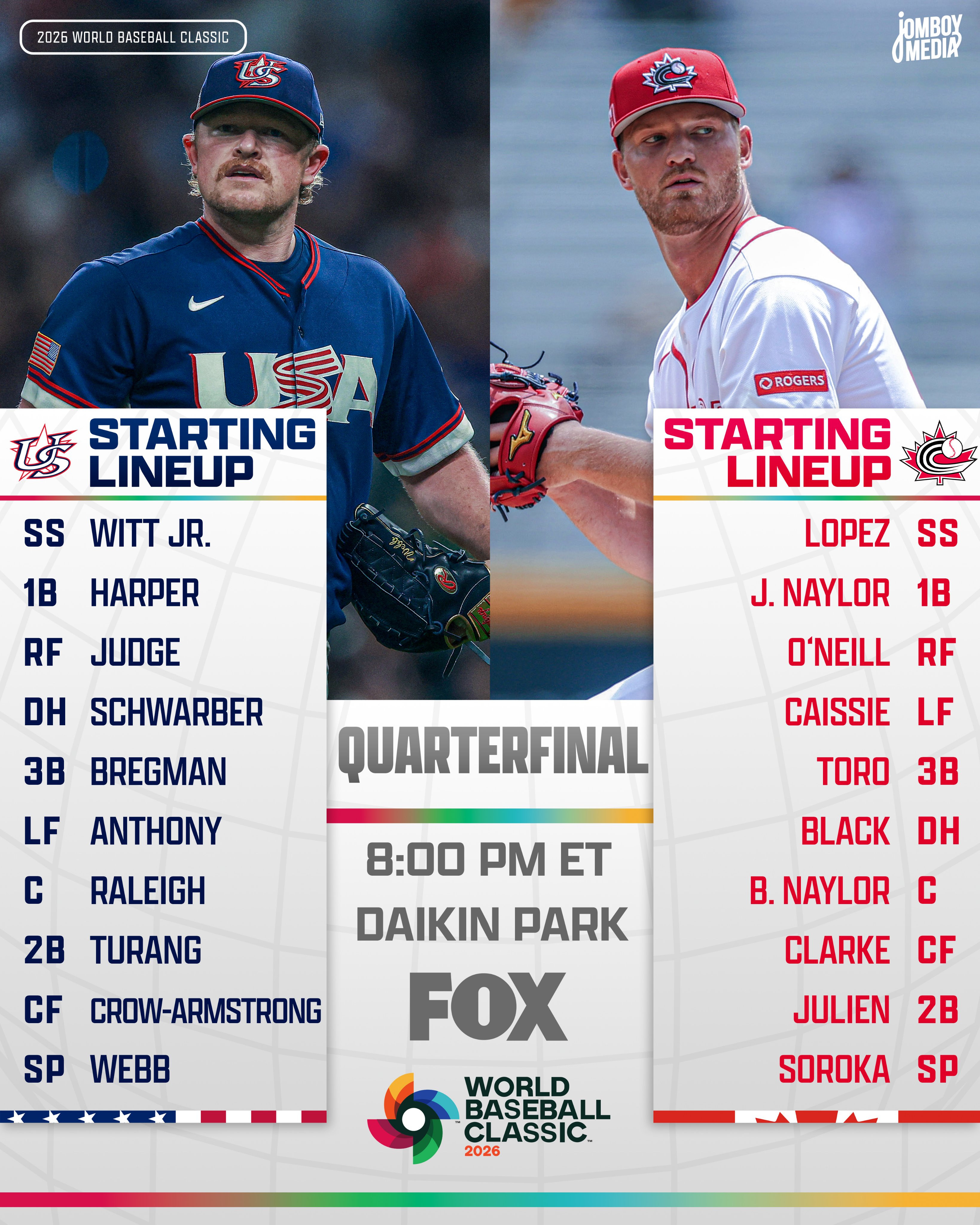 Quarterfinals editionJust over a half hour until first pitch