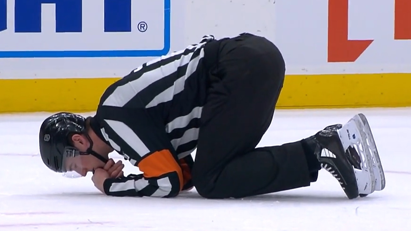 >>153870019>extra guys on the ice>puck hits one of the extra guys>play whistled dead for too much man>commercial break>come back>uhhhhhh no penal actually because we feel bad for the home team or their fans are bullying us or some shit