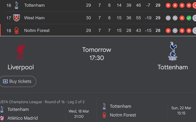 >>153868682Yeah because Forest are bad but Spurs are REALLY bad. 0 PL wins in 2026 is simply abominable and they've had some easy fixtures in there. Some of their key players are absolute wankers constantly trying to get sent off on purpose as well.