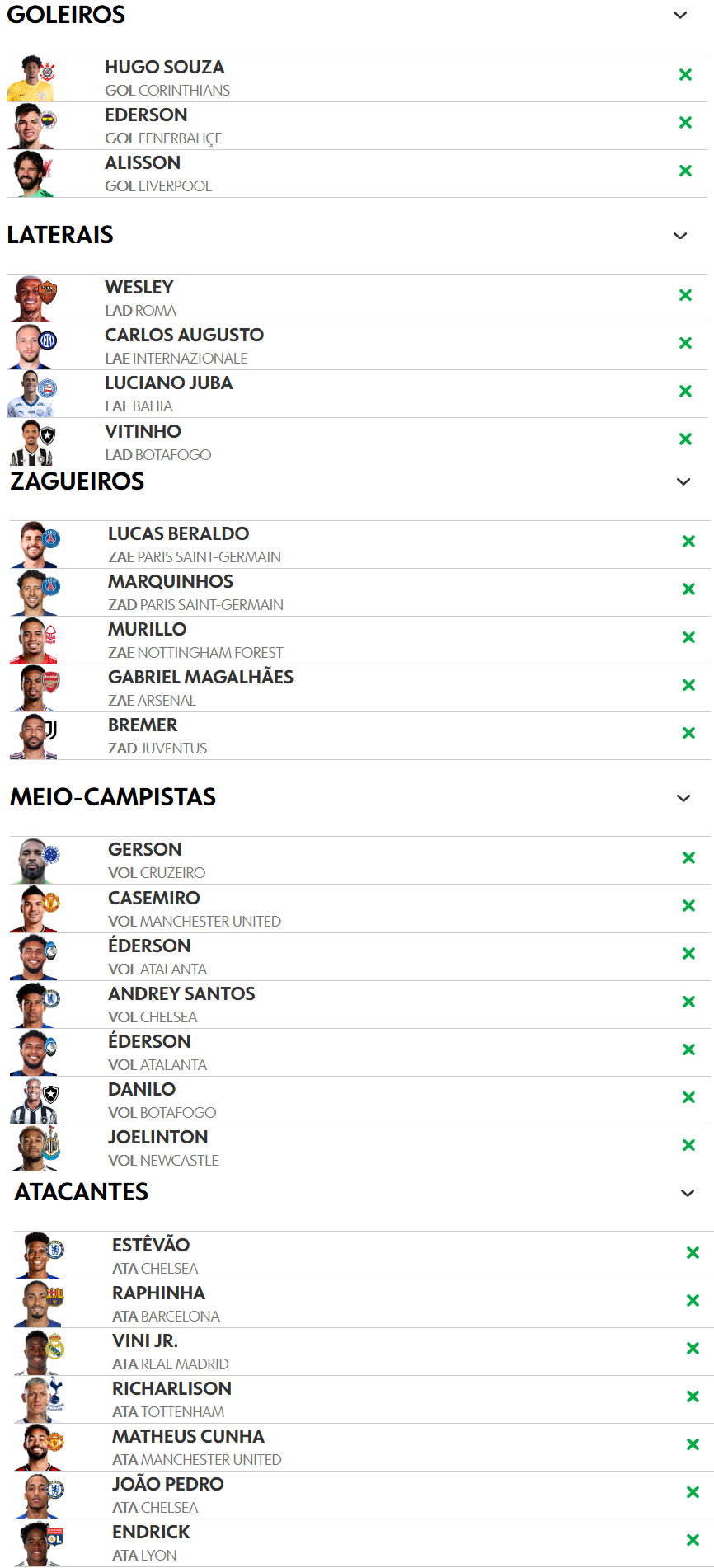 >>153897076>>153897311>Galatasaray>Fenerbahçe>Brentford>Bournemouth>>>>Manchester UnitedWHY DO WE STILL CONVOCATE PEOPLE FROM THIRD RATE EURO TEAMSCLUB WORLD CUP JUST PROVED THEIR TEAMS AREN'T BETTER
